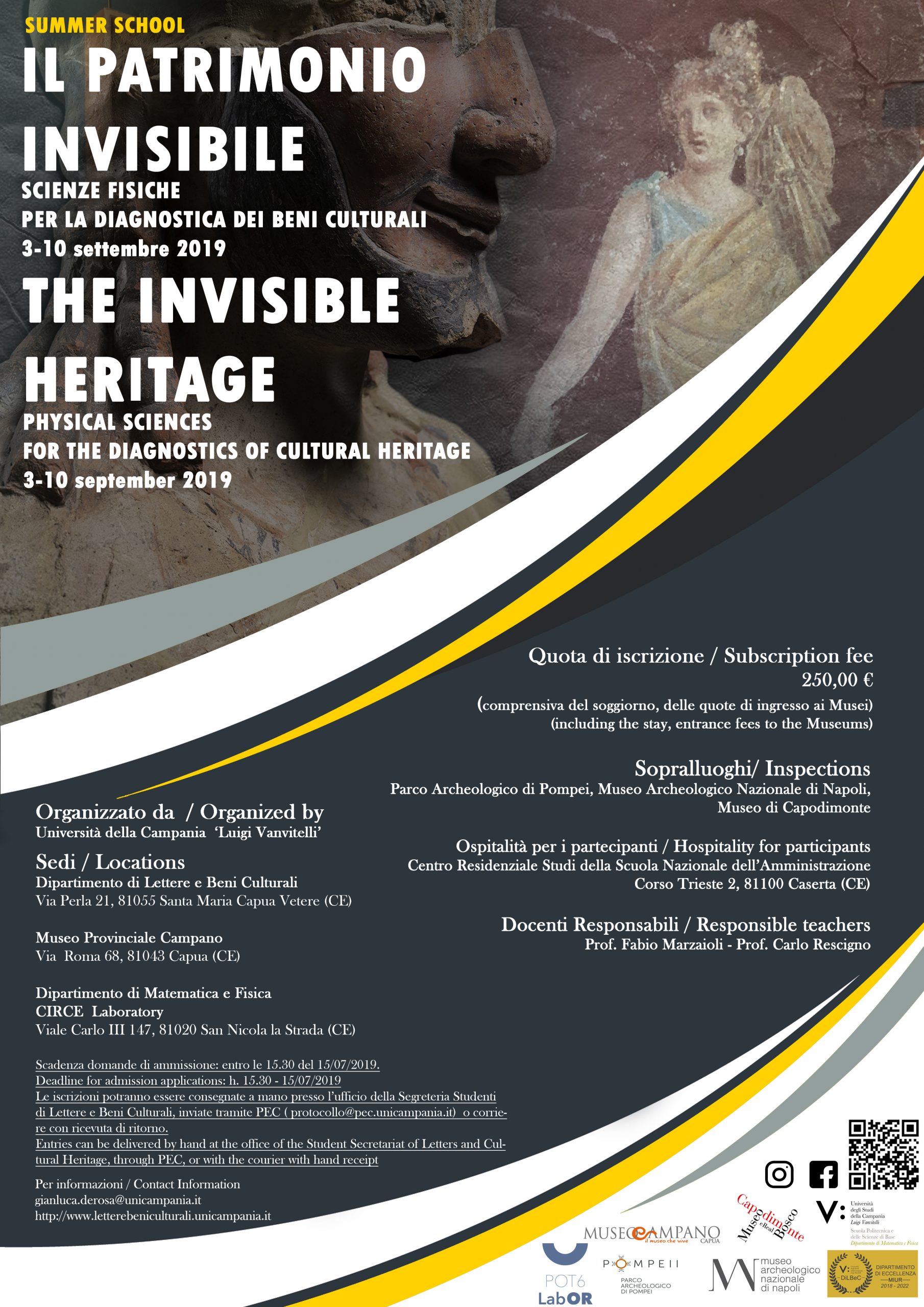 La Summer School è stata promossa da due Dipartimenti dell’Università della Campania ‘Luigi Vanvitelli’, il Dipartimento di Lettere e Beni Culturali e il Dipartimento di Matematica e Fisica, in accordo con la Provincia di Caserta, il Museo Archeologico Nazionale di Napoli, il Parco Archeologico di Pompei. La Scuola ha inteso presentare a una platea di giovani provenienti dai percorsi formativi delle scienze esatte e umanistiche (archeologi, storici dell’arte, dell’architettura) le tecnologie oggi più utilizzate in questo campo a partire da specifici percorsi di ricerca incardinati presso il Dipartimento di Lettere e Beni Culturali e dall’attività di un laboratorio, il Circe, collegato al Dipartimento di Matematica e Fisica, al cui interno è strutturata una linea di ricerca mirata ai Beni Culturali.