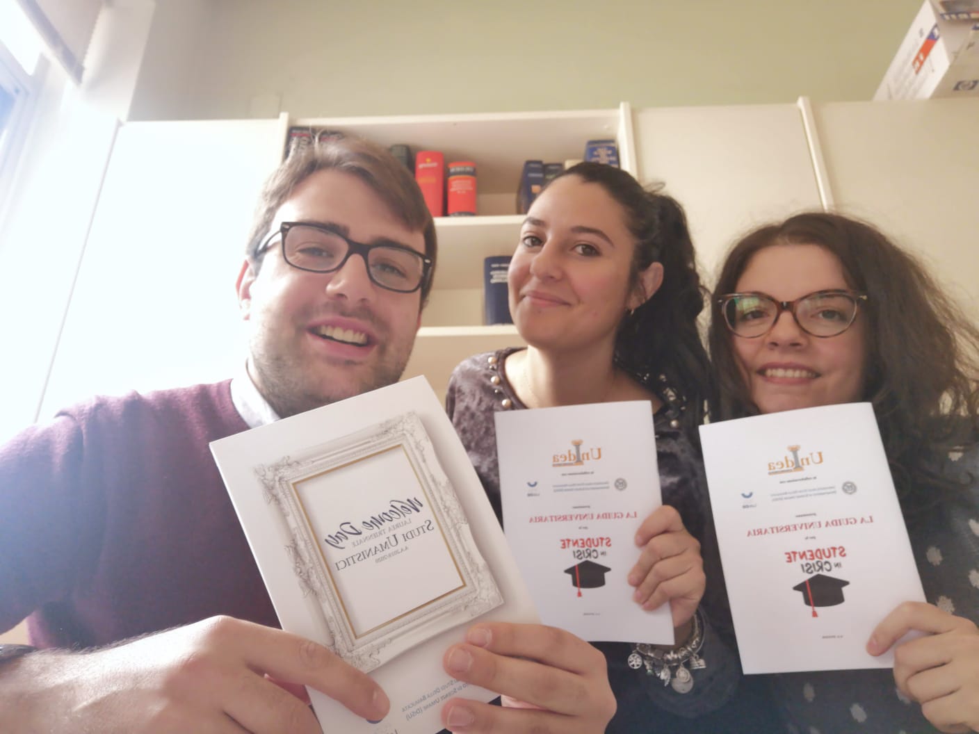Realizzazione di un video e di un ppt informativi, di una guida per gli studenti in collaborazione con l’Associazione studentesca Unidea, gadget (block notes personaizzati), buffet e brindisi di benvenuto.